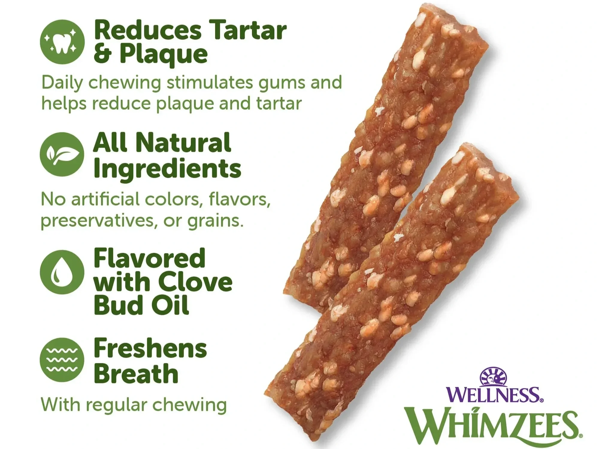Keep your dog's teeth clean and breath fresh with a daily WHIMZEES chew! Made with just six all-natural, non-GMO ingredients, these chews are proven to be two times as effective at reducing plaque and tartar. They're a long-lasting, fun treat that's perfect for dogs with sensitivities.